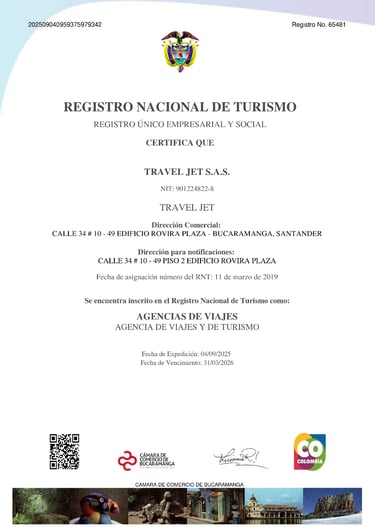 Certificados y autorizados para ofrecer planes turísticos en Colombia.